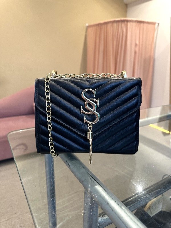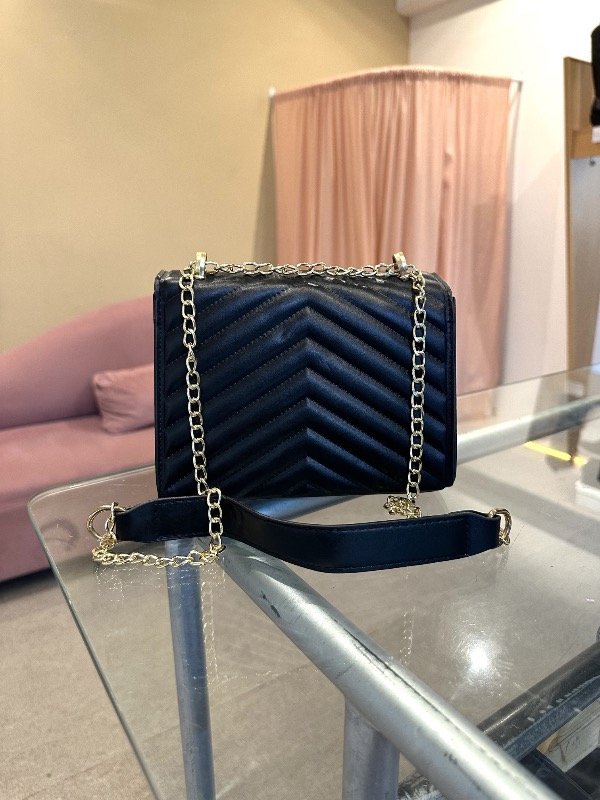 Cartera color Negra con correa dorada.